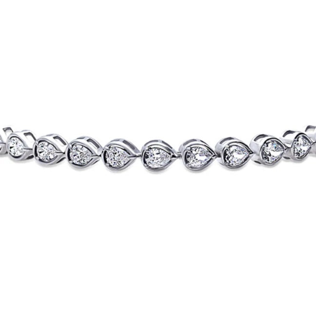 Indulge in timeless elegance with our sterling silver east-west tennis bracelet, adorned with premium pear-cut cubic zirconia stones totaling 5.4 to 6.2 carats, each delicately set in a secure 3-prong setting. With its classic design and 5mm width, this bracelet effortlessly exudes sophistication. Crafted with rhodium-plated sterling silver and complete with a box with tongue and safety clasp, it's the perfect accessory for any occasion. Plus, it comes with a FREE gift box for added convenience.