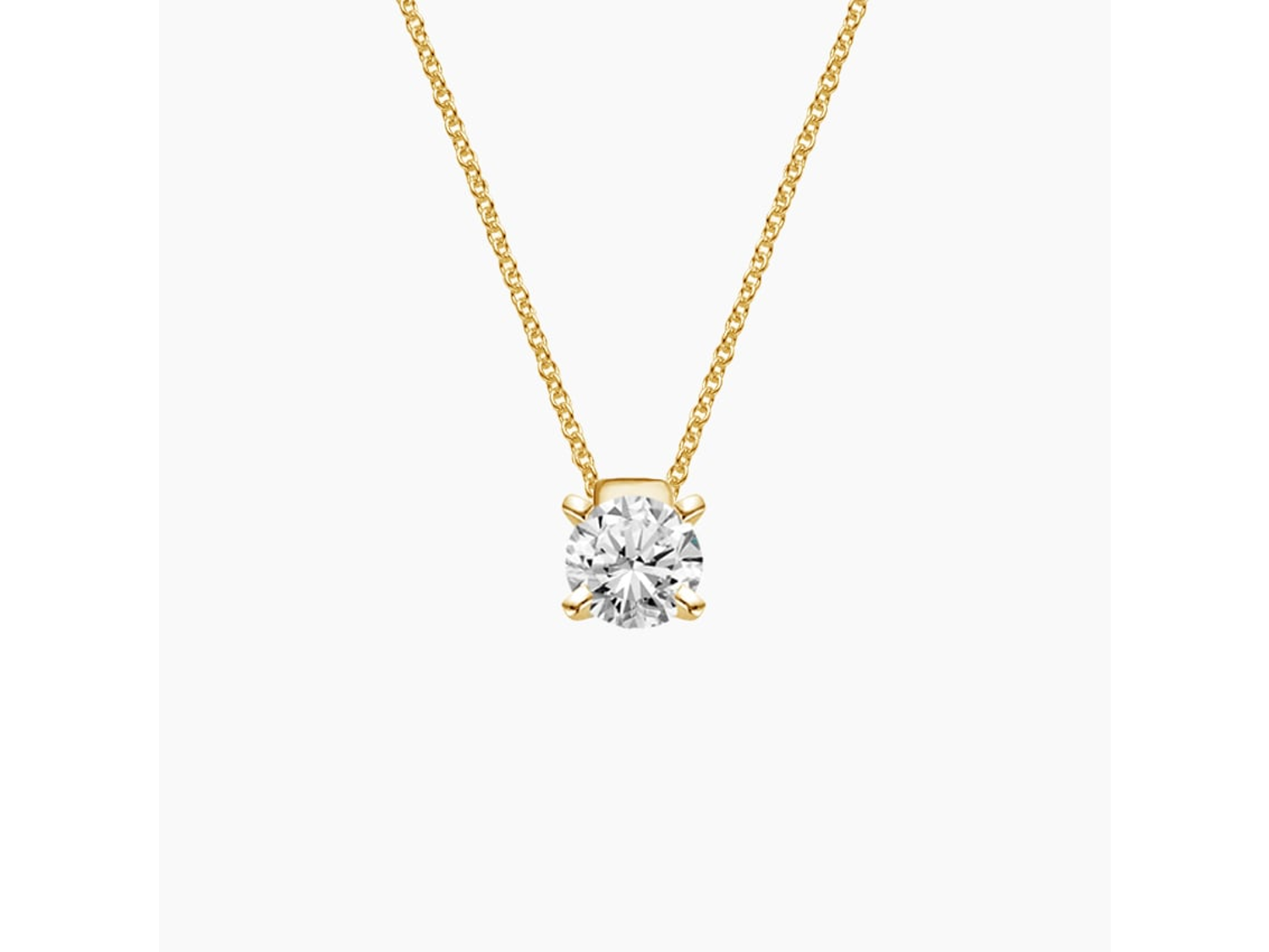 Exuding elegance, our Lab Grown Diamond Pendant 1 ctw features a dazzling lab grown diamond set in 18K yellow gold, suspended gracefully on a lustrous cable chain. Experience timeless beauty with ethical sourcing.