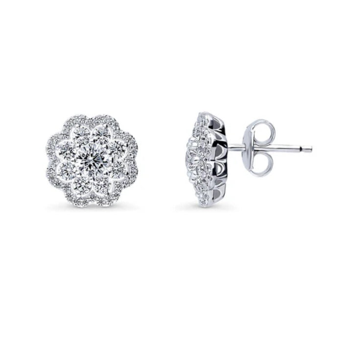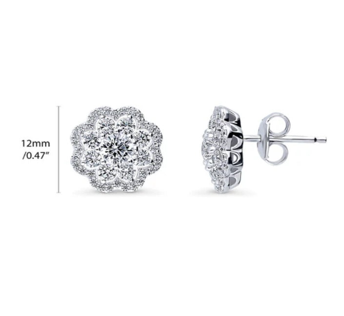Flower Halo CZ Stud Earrings in Sterling Silver