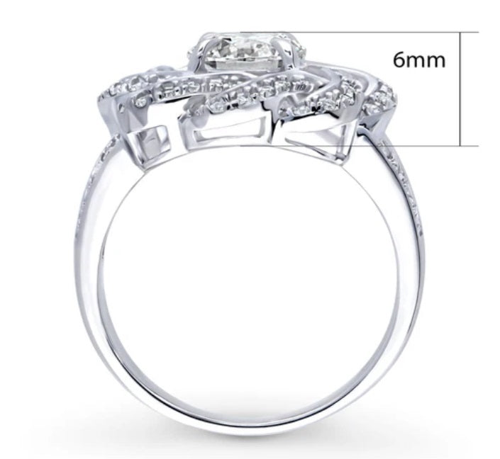 Embrace romance with our enchanting woven floral ribbon ring, crafted from sterling silver with rhodium plating for enduring beauty. Adorned with 1.61 carats of round cubic zirconia stones in a mesmerizing prong setting, this ring sparkles with intricate details, making it the perfect choice for any special occasion. With a height of 6mm and a band width of 2.5mm, it offers a comfortable fit and timeless elegance. The classic round cut stones exude versatility and breathtaking brilliance, making this ring a timeless symbol of glamour and sophistication. Each ring comes with a FREE gift box, ready to make your celebration even more memorable.