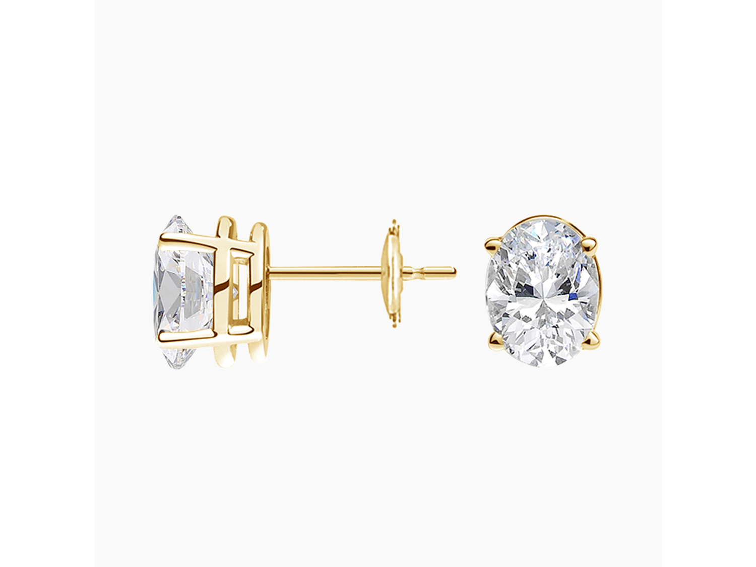 Enhance your elegance with our 18K Yellow Gold Oval Lab Grown Diamond Stud Earrings. Crafted in luxurious yellow gold, these sleek earrings feature glistening oval-shaped lab grown diamonds, totaling 2 ctw, secured by guardian backs for added security and comfort. Delight in the eye-catching allure of these timeless studs, perfect for adding a touch of sophistication to any outfit, while showcasing your commitment to sustainable luxury.
