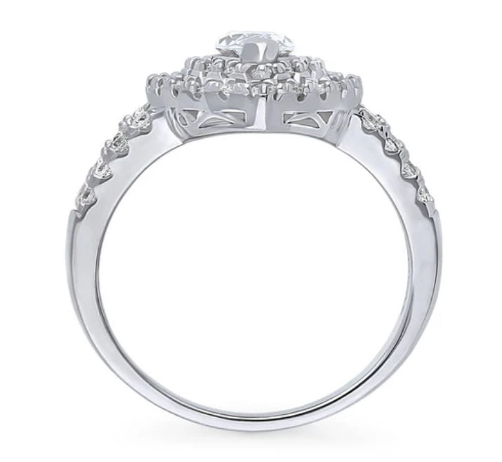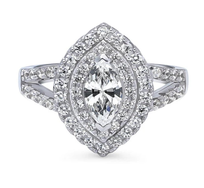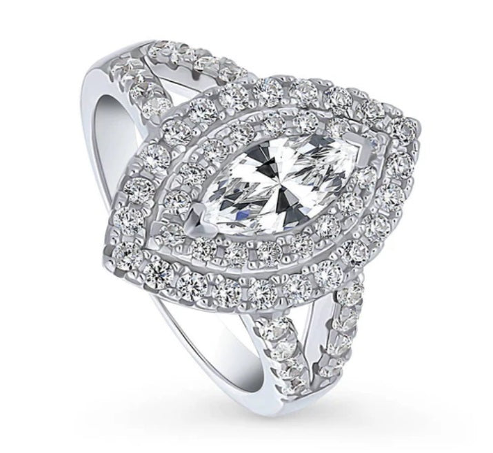 Halo Marquise CZ Statement Split Shank Ring in Sterling Silver