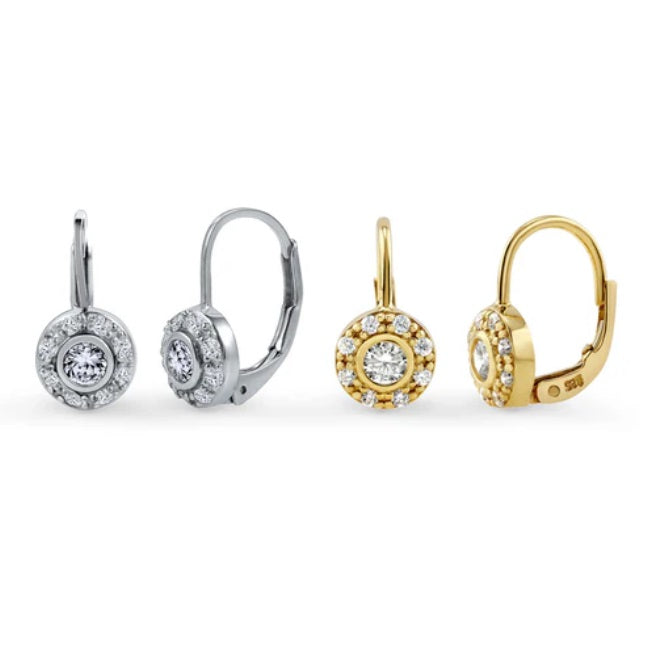 Halo Round CZ Leverback Dangle Earrings in Sterling Silver, 2 Pairs