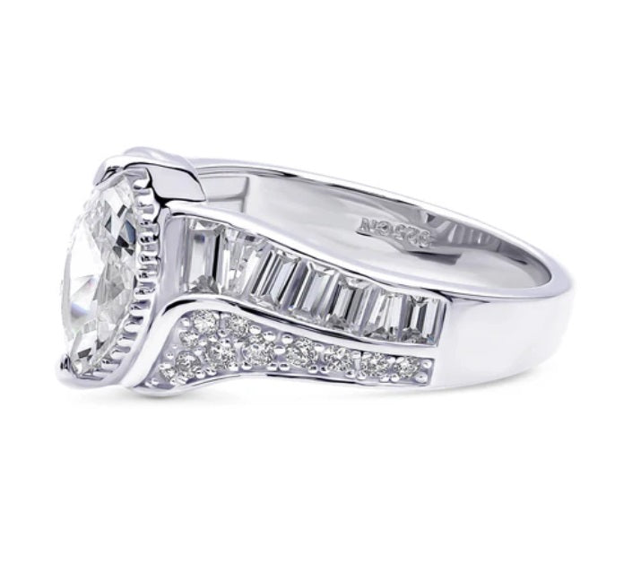 Elevate your style with our captivating marquise ring, featuring a dazzling 1-carat center stone complemented by intricate baguette, tapered baguette, and round cubic zirconia accents. Crafted from sterling silver, this Art Deco-inspired piece symbolizes enduring love and sophistication, making it the perfect choice for a timeless and elegant look.