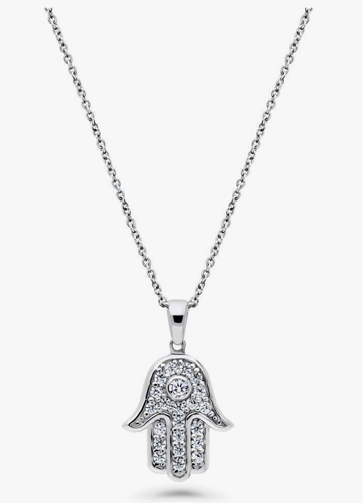 Hamsa Hand CZ Pendant Necklace in Sterling Silver