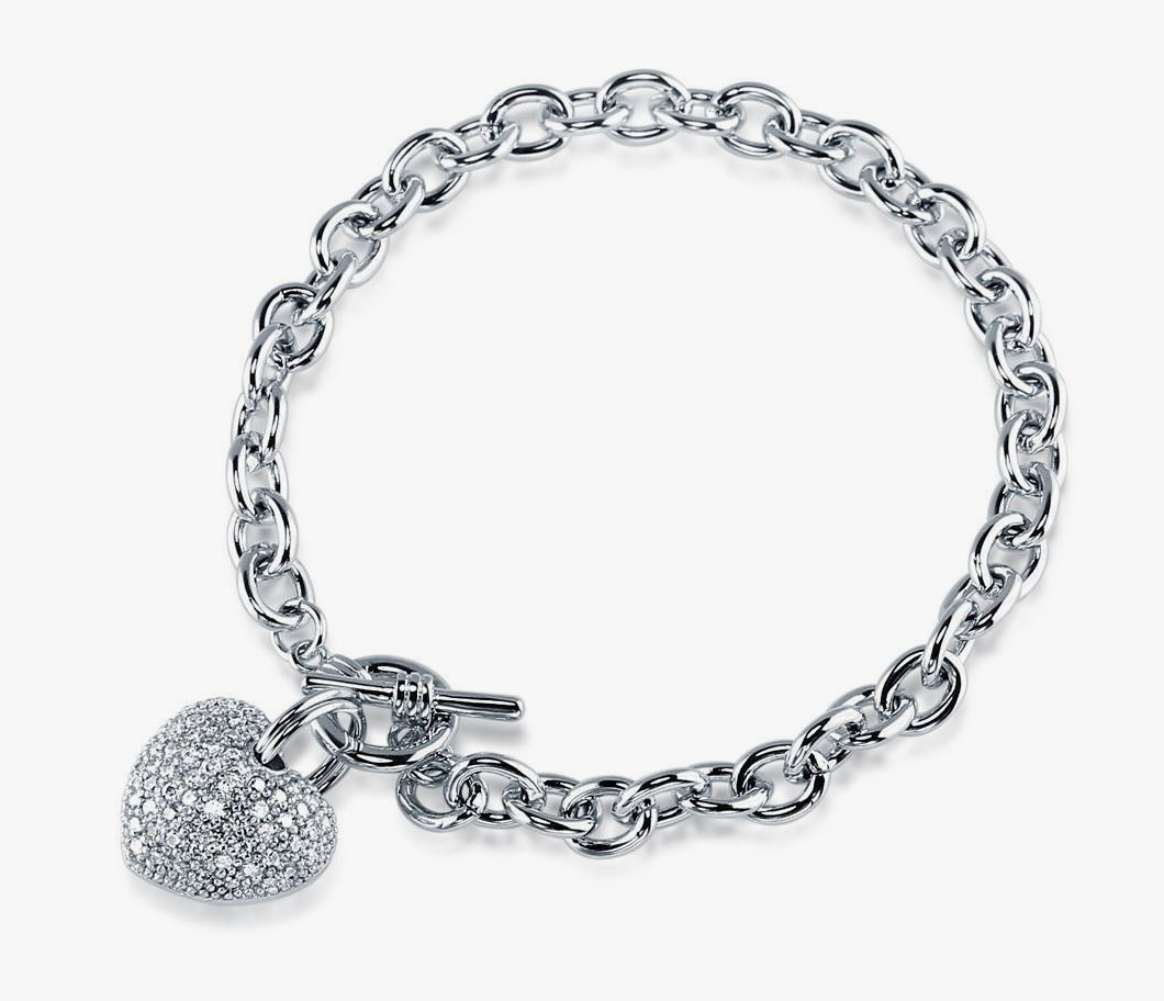 Heart CZ Toggle Charm Bracelet in Silver-Tone