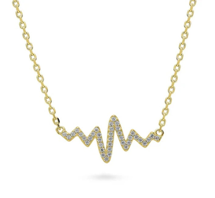 Heartbeat CZ Pendant Necklace in Gold Flashed Sterling Silver