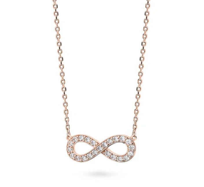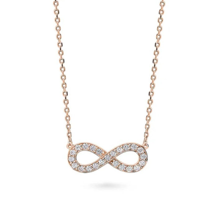Infinity CZ Pendant Necklace in Rose Gold Flashed Sterling Silver