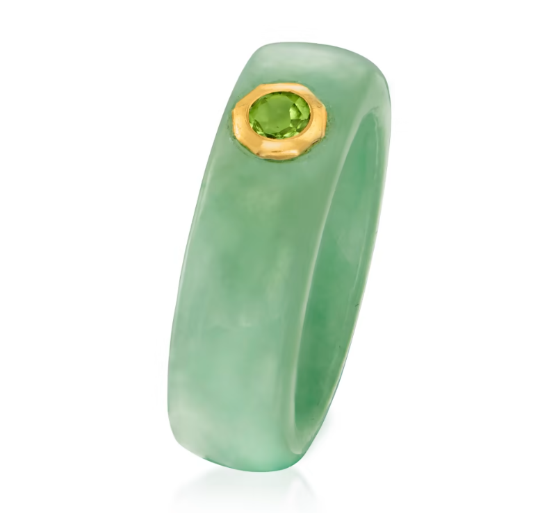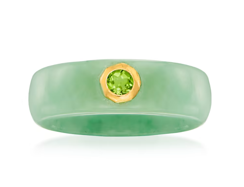 Jade and .30 Carat Peridot Ring with 14kt Yellow Gold