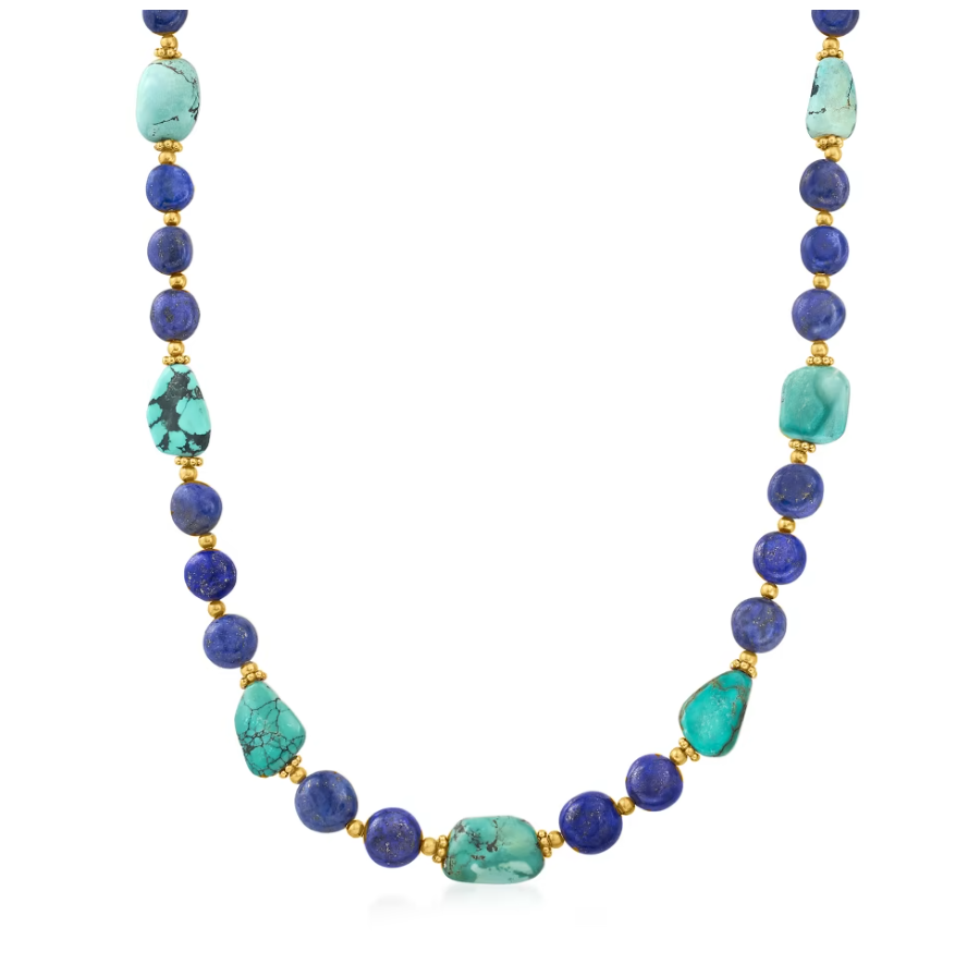 Lapis and Turquoise Bead Necklace with 18kt Gold Over Sterling. 18"