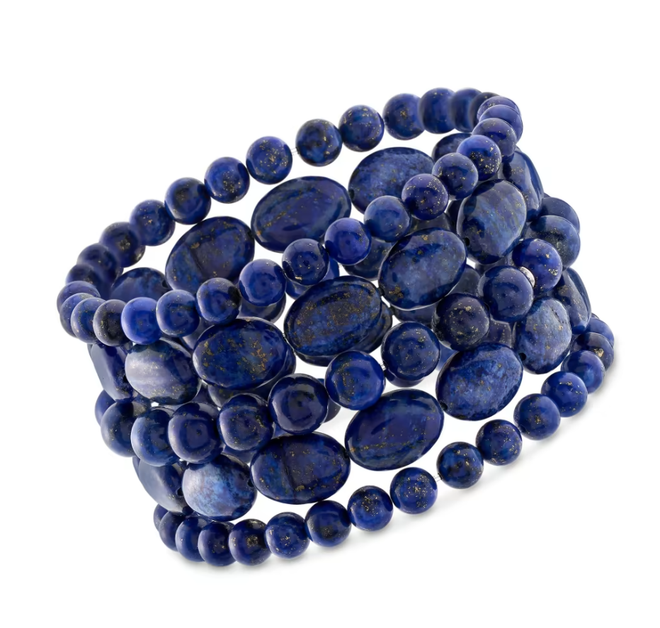 Lapis Jewelry Set: Five Bead Stretch Bracelets