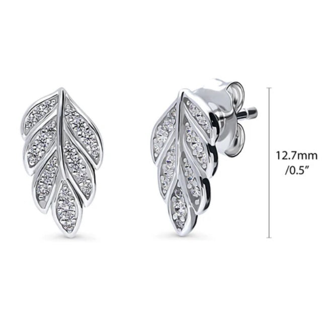 Leaf CZ Stud Earrings in Sterling Silver