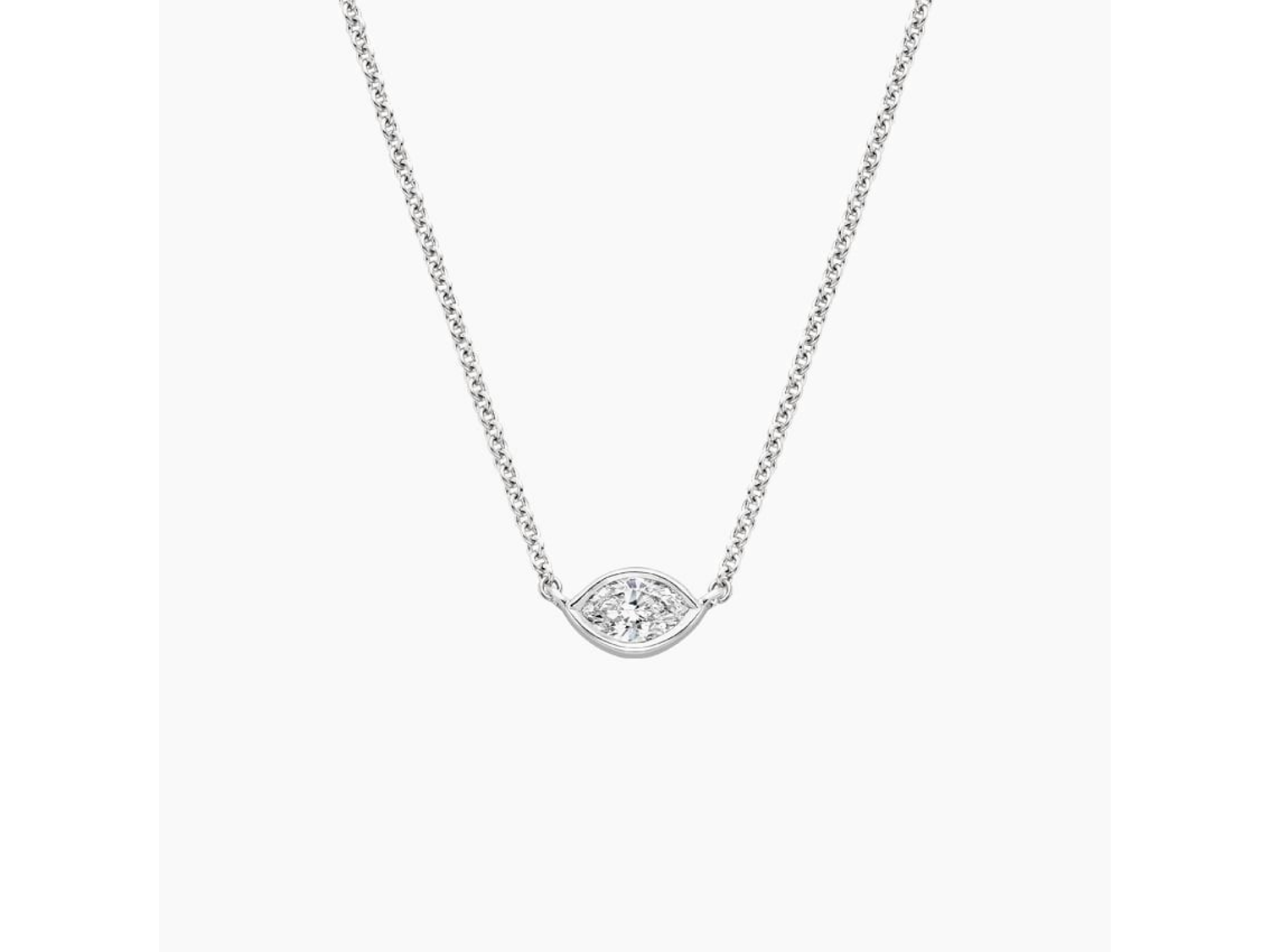 Elevate your style with our stunning Diamond Pendant featuring a marquise-shaped horizontally-set diamond. Encased within a sleek bezel setting, this chic pendant boasts a lotus-shaped opening on the back, adding an extra touch of sophistication. With an adjustable necklace length of either 12 or 14 inches, you can customize the fit to suit your individual preference. Sparkle and shine with this elegant accessory, perfect for any occasion.