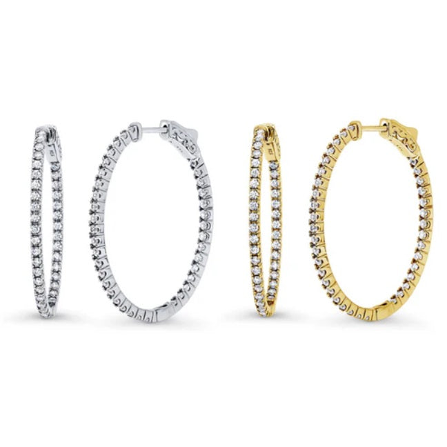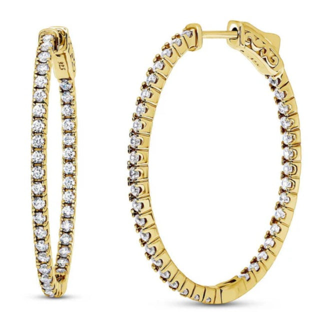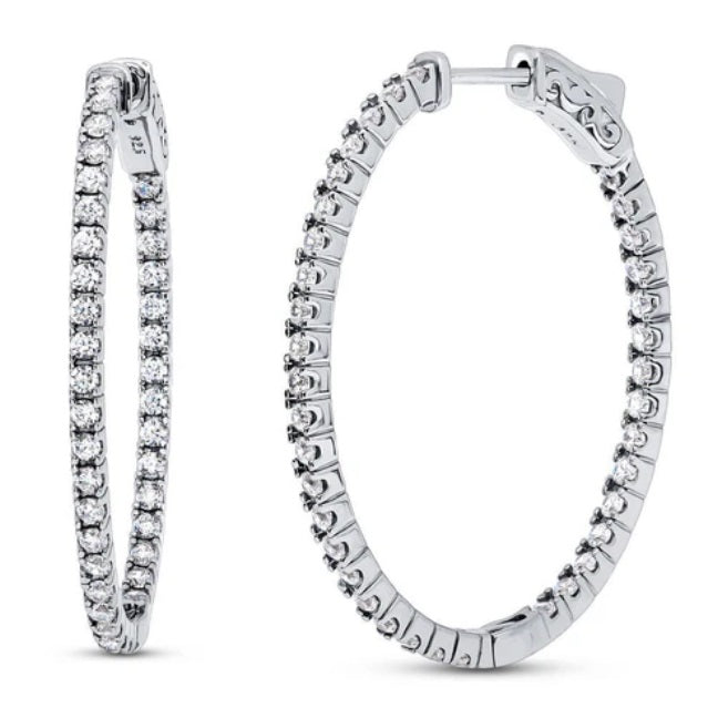 Elevate your style effortlessly with our Sterling Silver Oval Inside-Out Hoop Earrings Set, featuring 2.96 carats of premium round cubic zirconia. Crafted from stamped 925 sterling silver, rhodium plated and yellow gold flashed, these nickel-free earrings come in a set of 2 pairs, perfect for versatile wear. Complete with a FREE gift box, these dazzling hoops are the ultimate wardrobe staples for a touch of elegant glam.