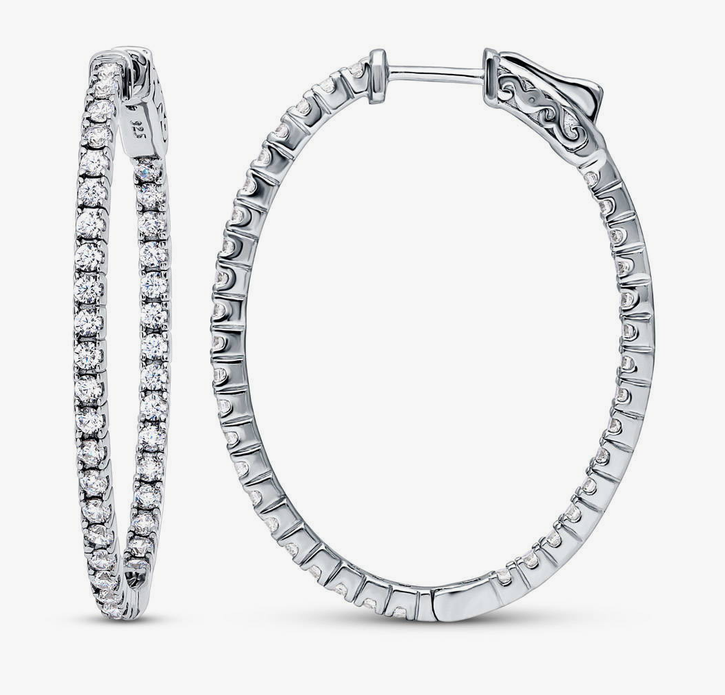 Oval CZ Medium Inside-Out Hoop Earrings in Sterling Silver 1.4"