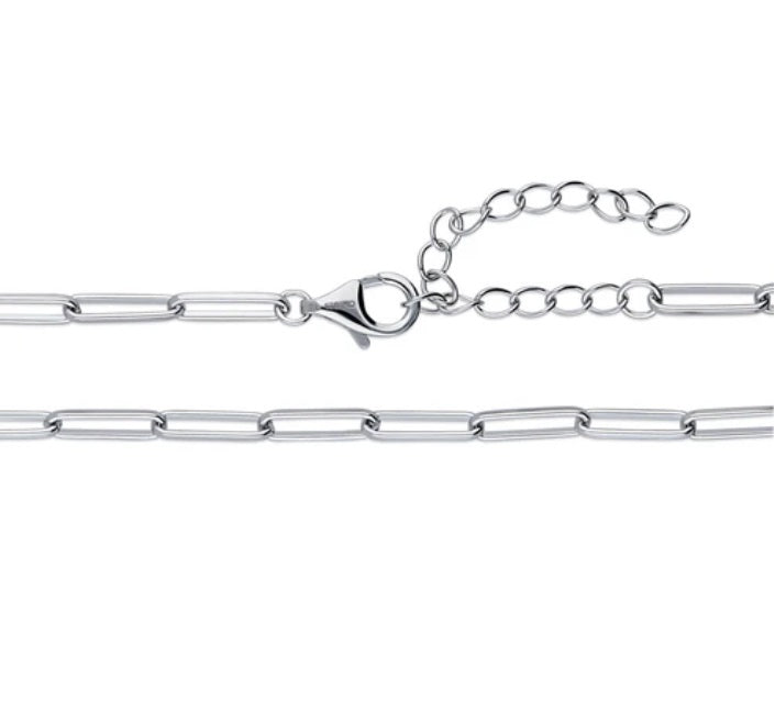 Paperclip CZ by the Yard Chain Necklace in Sterling Silver, 2 Piece