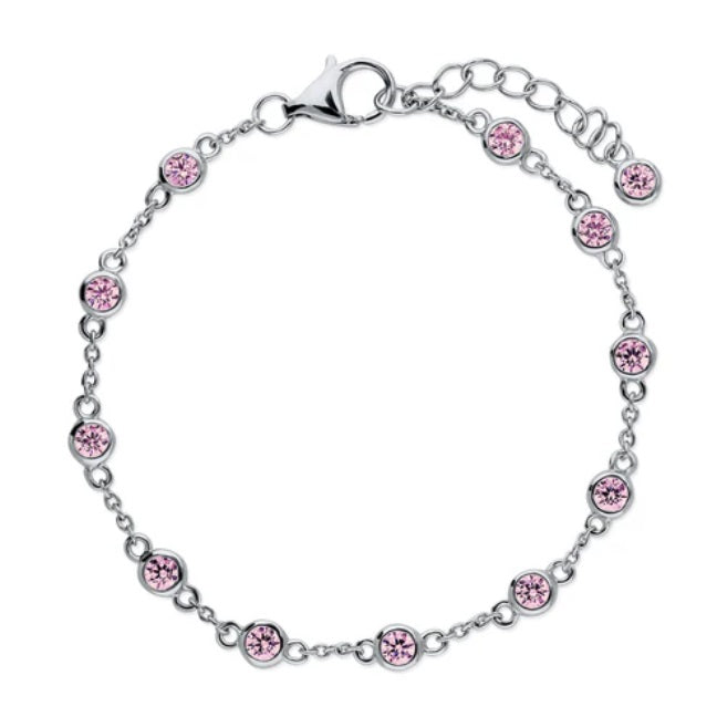 Pink CZ by the Yard Station Bracelet in Sterling Silver