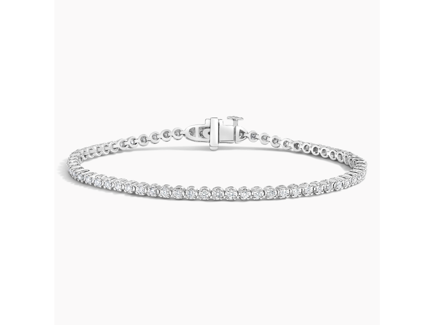 Adorn your wrist with elegance in this eye-catching Diamond Tennis Bracelet. Featuring 1 carat of shimmering round diamonds individually set in lustrous links, this bracelet adds a touch of sophistication to any ensemble. With a length of 6.5 inches, it's the perfect accessory for both formal occasions and everyday wear.