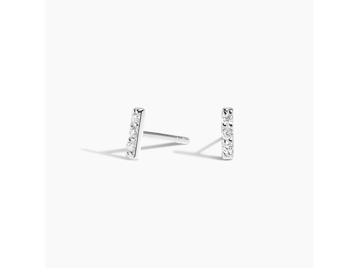 Elevate your everyday style with our Pavé Bar Diamond Earrings in Silver. These chic earrings feature two sleek bar studs adorned with pavé-set diamonds, adding a touch of sparkle and sophistication to any outfit. With a total carat weight of 1/15, they offer a timeless and versatile accessory for all occasions.