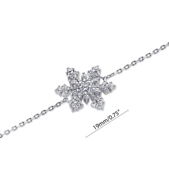 Experience the magic of winter with our sterling silver snowflake bracelet, featuring a dazzling array of round cubic zirconia stones totaling 0.74 carats, meticulously set in both pave and prong settings. Adorn your wrist with this enchanting piece, complete with a festive centerpiece measuring 0.75 inches in diameter, and embrace the holiday spirit in style.