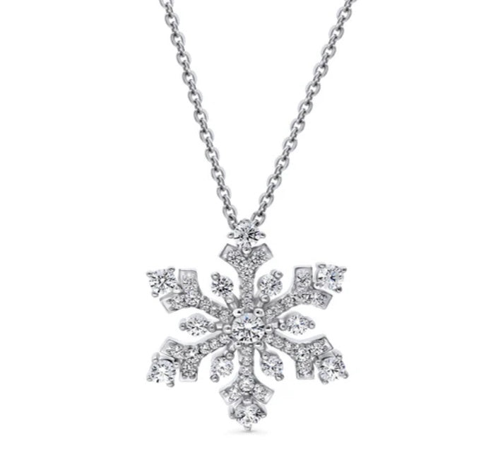 Embrace the magic of the holiday season with our enchanting snowflake necklace, crafted from sterling silver and adorned with premium round cubic zirconia stones. This exquisite piece captures the essence of winter festivities, evoking joy and wonder with its intricate design. With a lobster claw clasp and a FREE gift box included, it's the perfect accessory to add a touch of festive charm to any outfit.