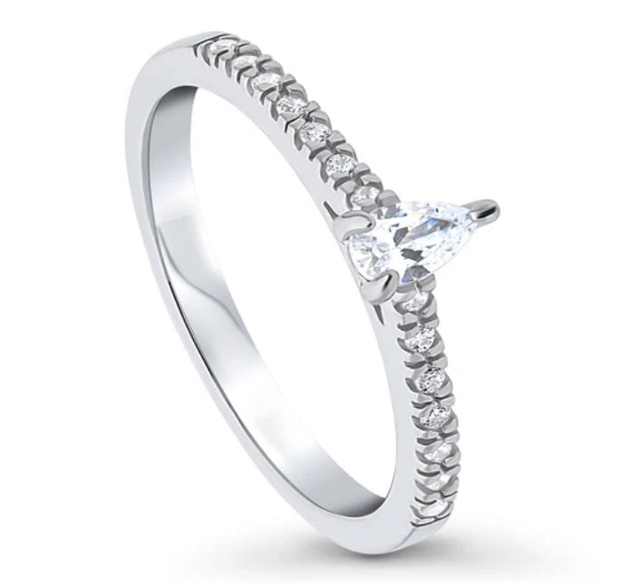 Solitaire 0.3ct Pear CZ Ring in Sterling Silver