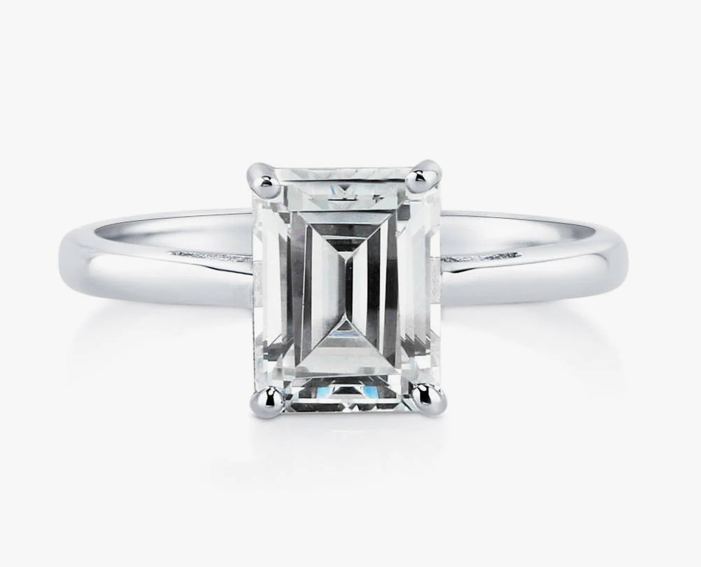 Solitaire 2.1ct Emerald Cut CZ Ring in Sterling Silver