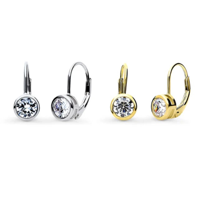 Elevate your style with this set of solitaire dangle earrings, crafted from rhodium-plated and yellow gold flashed sterling silver, adorned with lustrous round-cut cubic zirconia stones totaling 2.4 carats. The modern bezel setting adds a trendy touch to these classic pieces, making them a versatile addition to any jewelry collection. Packaged in a FREE gift box, these earrings offer timeless glamour perfect for any occasion.