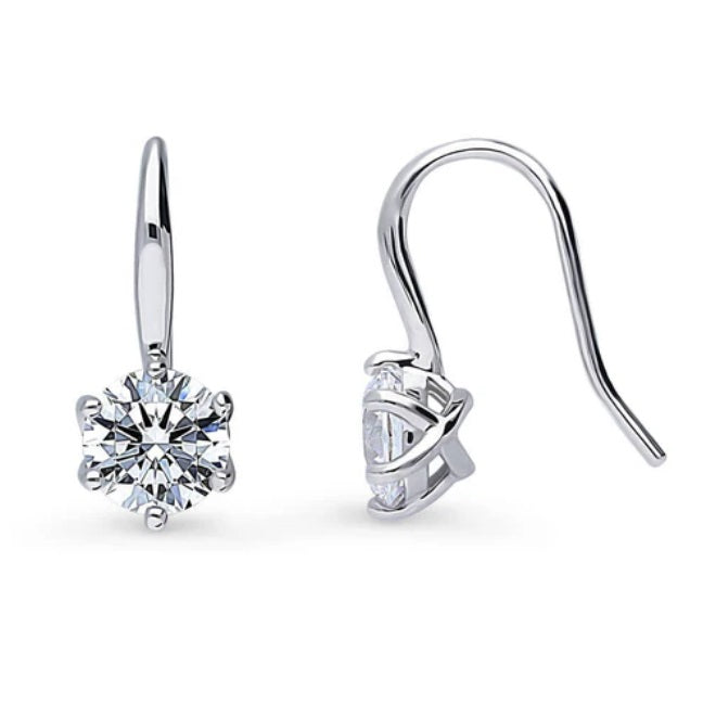 Solitaire 2.5ct Round CZ Fish Hook Dangle Earrings in Sterling Silver