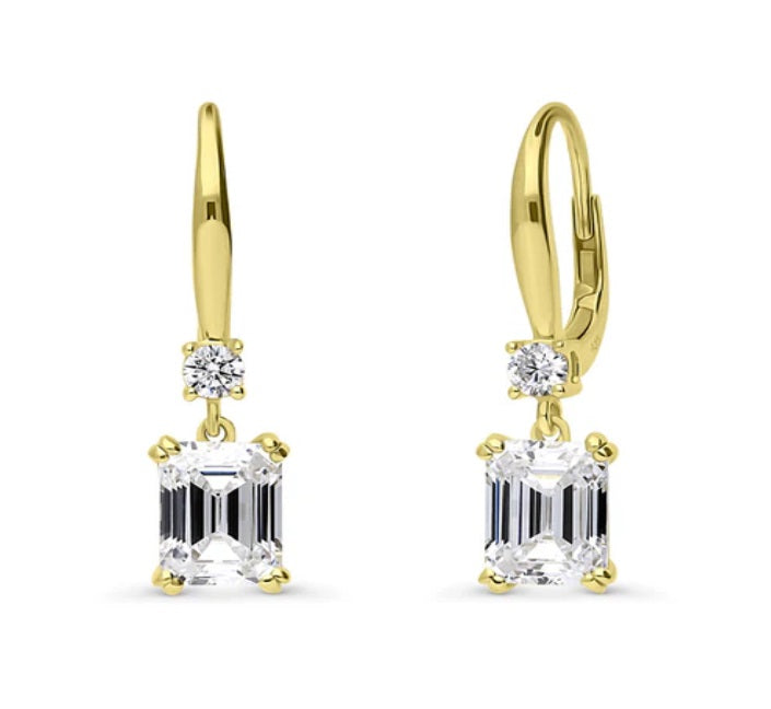 Solitaire 3.4ct Emerald Cut CZ Leverback Earrings in Sterling Silver