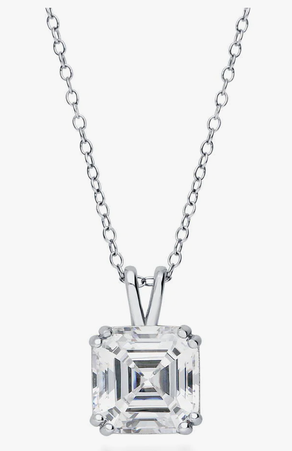 Solitaire 3ct Asscher CZ Pendant Necklace in Sterling Silver