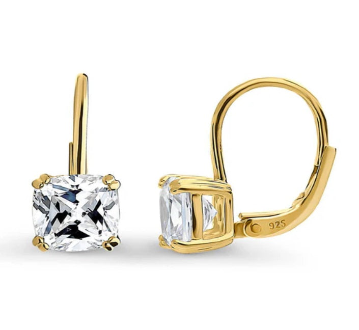 Make a statement with these solitaire dangle earrings, adorned with premium 4-carat total cushion-cut cubic zirconia stones in 4-prong settings. Their gilded brilliance captures attention, offering a timeless elegance reminiscent of 19th-century sophistication.