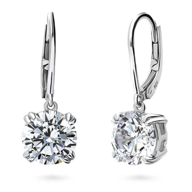 Solitaire 4ct Round CZ Leverback Dangle Earrings in Sterling Silver