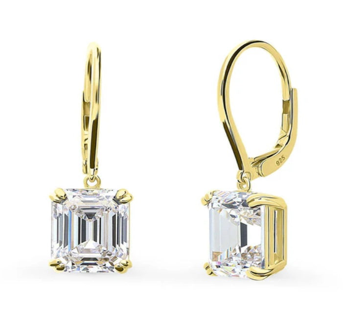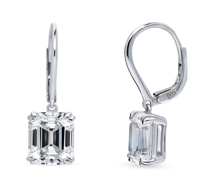 Embrace timeless elegance with these solitaire dangle earrings, boasting premium emerald-cut cubic zirconia stones that radiate sophistication from every angle. Crafted from stamped 925 sterling silver and featuring leverback closures, these earrings are both luxurious and comfortable for all-day wear.