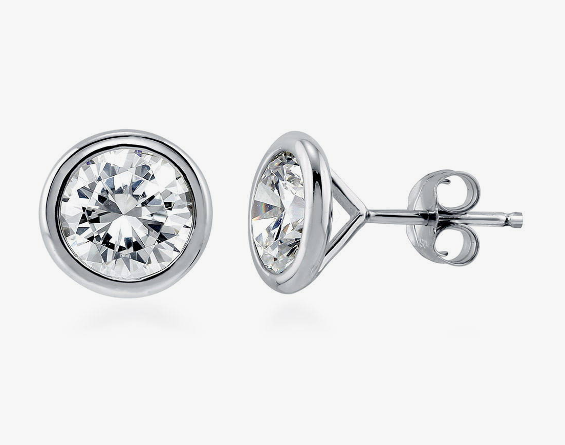 Solitaire Bezel Set Round CZ Stud Earrings in Sterling Silver