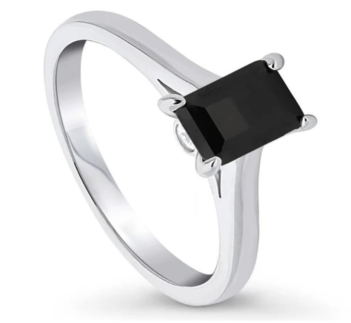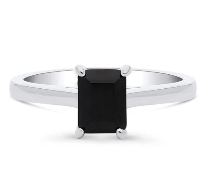 Solitaire Black Emerald Cut CZ Ring in Sterling Silver 1ct