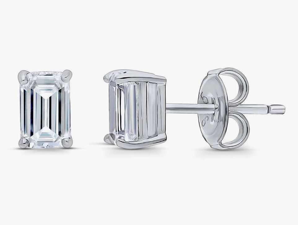 Solitaire Emerald Cut CZ Stud Earrings in Sterling Silver
