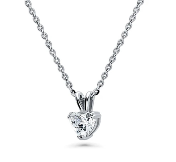Solitaire Heart 0.7ct CZ Pendant Necklace in Sterling Silver