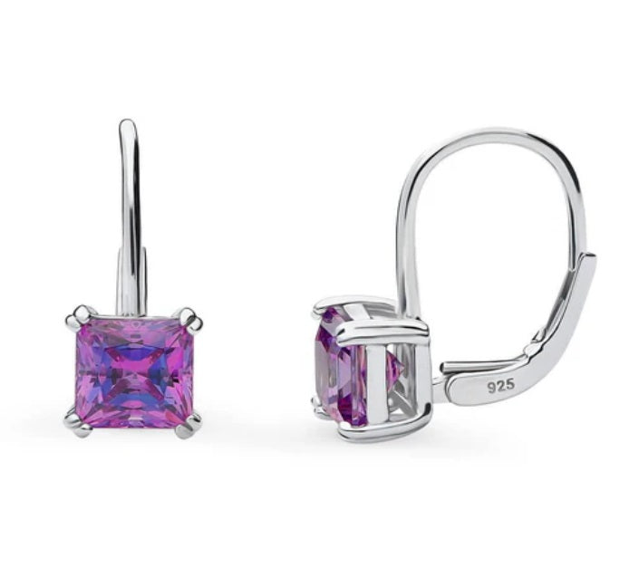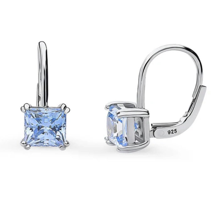 Solitaire Princess CZ Leverback Earrings in Sterling Silver 2.4ct
