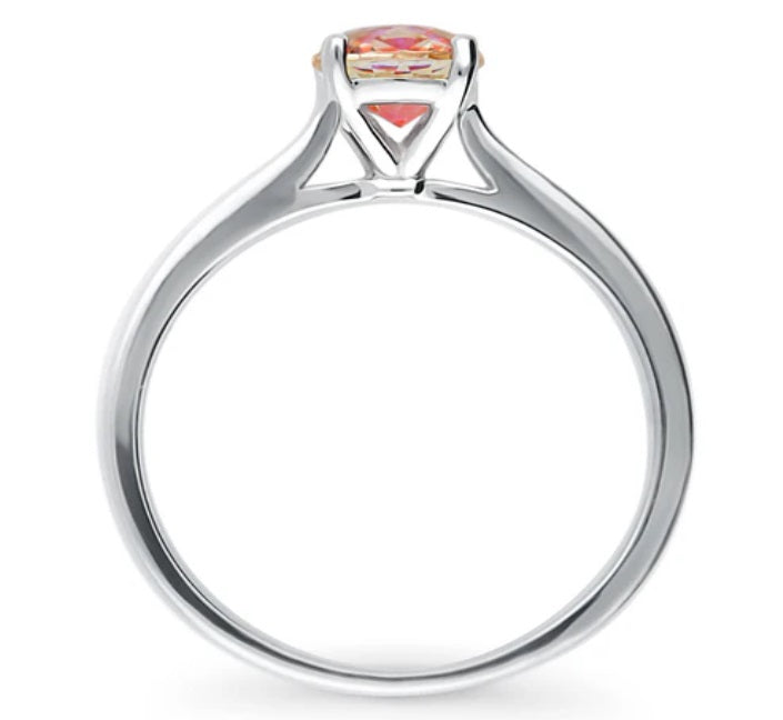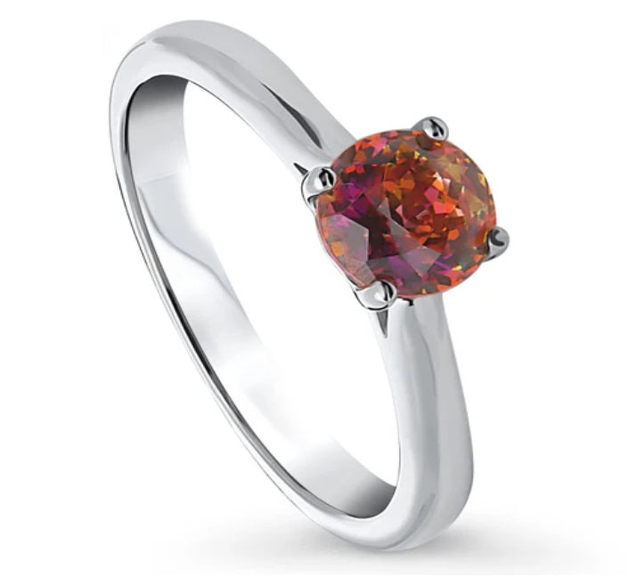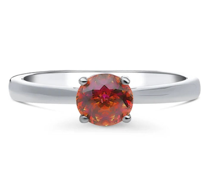 Solitaire Red Orange Round CZ Ring in Sterling Silver 0.8ct