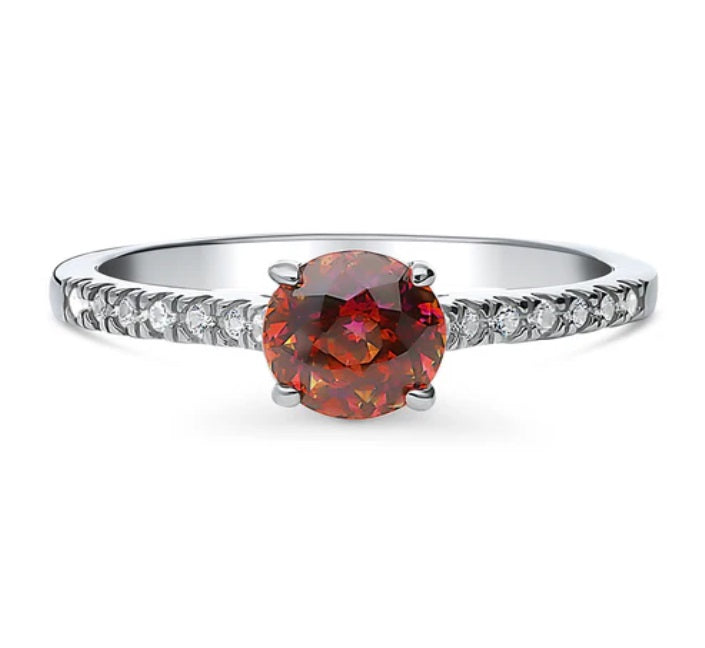Solitaire Red Orange Round CZ Ring in Sterling Silver 0.8ct