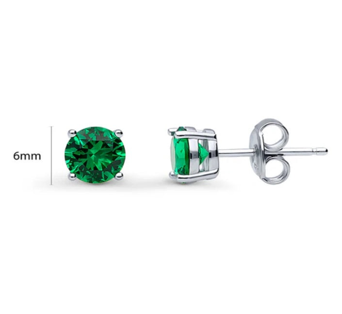Radiate vibrant elegance with these sterling silver solitaire stud earrings, plated with rhodium and adorned with 6mm round cubic zirconia stones. With a total weight of 1.6 carats and set in a secure 4-prong setting, they offer timeless glamour in a versatile and classic round cut. Measuring 0.24 inches in length and width, these earrings feature center posts with butterfly backs for comfortable wear, making them the perfect addition to any ensemble.