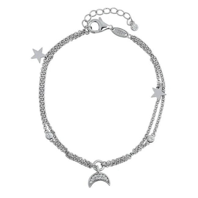 Star Crescent Moon CZ Charm Bracelet in Sterling Silver
