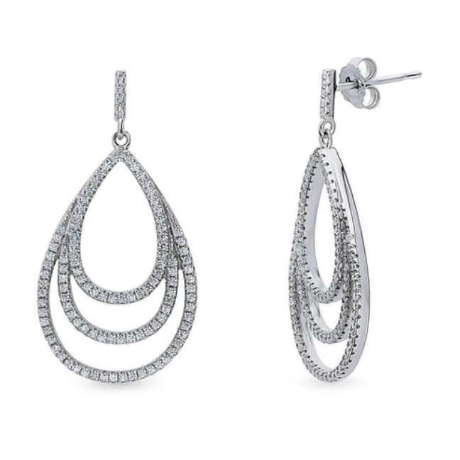 Add a touch of romance to your look with our Sterling Silver Teardrop Dangle Earrings, adorned with 1.09 carats of round cubic zirconia. Crafted from stamped 925 sterling silver, these nickel-free earrings feature micro pave settings for maximum shimmer. With a length of 1.5 inches and butterfly backs for secure wear, these earrings boast delicately embellished details and come with a FREE gift box, perfect for expressing your romantic style.