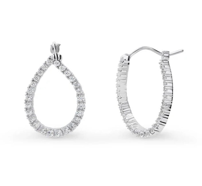 Elevate your style with our Sterling Silver Teardrop Woven Hoop Earrings, featuring premium round cubic zirconia stones totaling 1.06 carats. Their unique twist on the timeless silhouette adds a dazzling allure to any look. With latch backs and a FREE gift box, these earrings are a must-have for those seeking elegance with a twist.