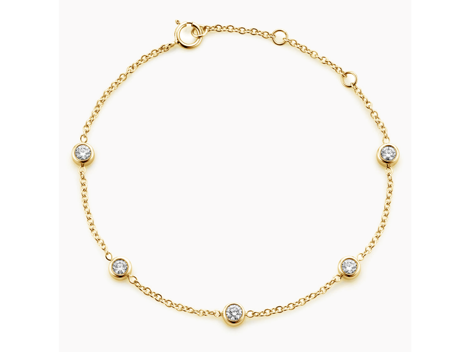 Elegance meets timelessness in the Diamond Bezel Bracelet. Crafted in 18K yellow gold, this bracelet features five scintillating bezel-set diamonds adorning a delicate cable chain. The length of the bracelet can be easily adjusted from 6 to 7 inches, ensuring a perfect fit for every wrist. An exquisite addition to any jewelry collection, this bracelet effortlessly combines sophistication with versatility.
