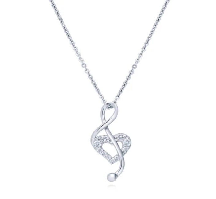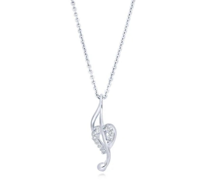 Treble Clef Music Note Open Heart CZ Necklace in Sterling Silver