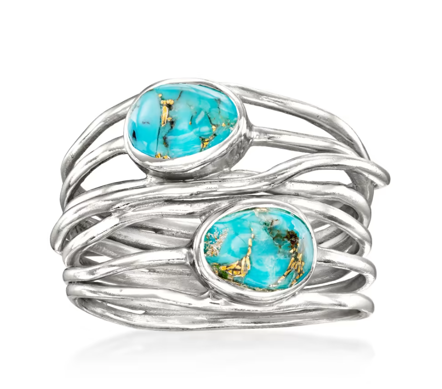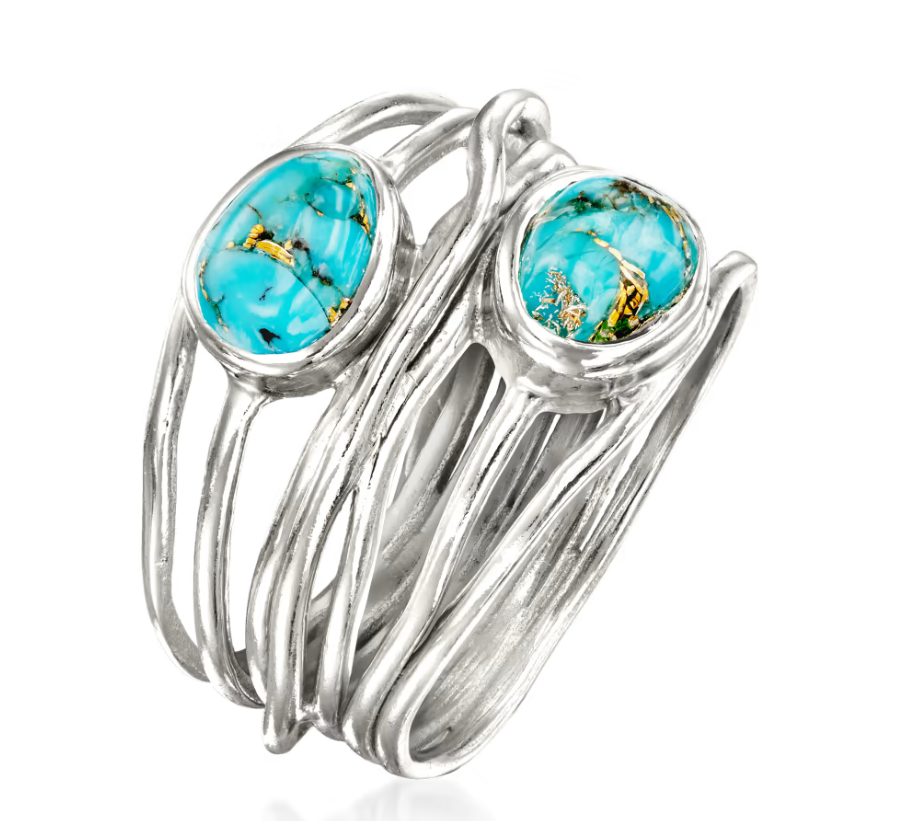 Adorned with two oval cabochon stabilized turquoise gemstones, each measuring 5x7 mm, this piece captures the essence of the serene and captivating blue that turquoise is renowned for. The use of stabilized turquoise ensures durability and color consistency, making it a perfect choice for everyday wear or special occasions.