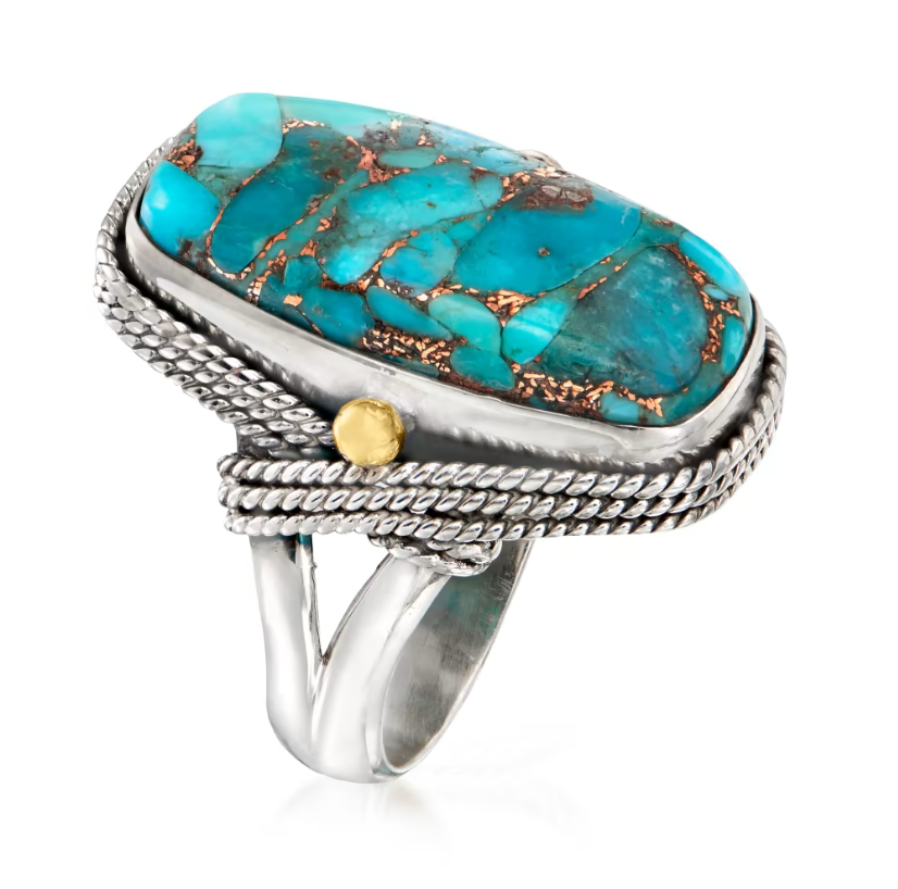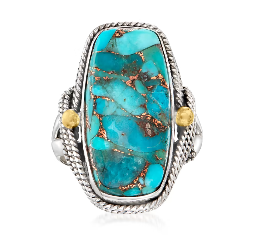 Turquoise Ring in Sterling Silver with 18kt Gold Over Sterling