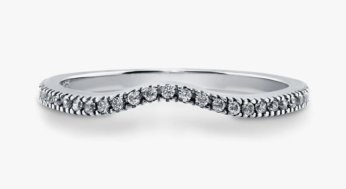 Wishbone Micro Pave Set CZ Curved Half Eternity Ring in Sterling Silver